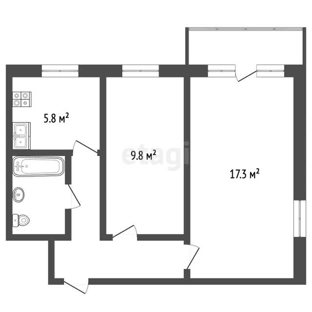 1/2 share, 2-room flat, 45m², 4/12 floor