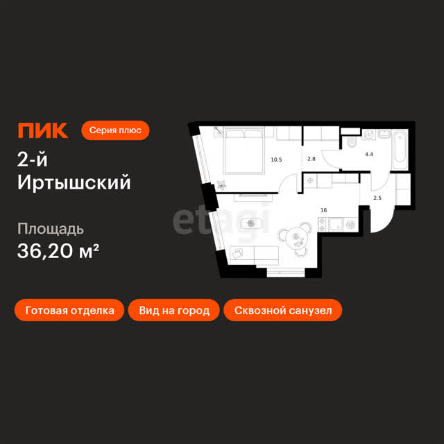 Mortgage from 122 373 руб./mth.1-room sq.42 m22/43 floor