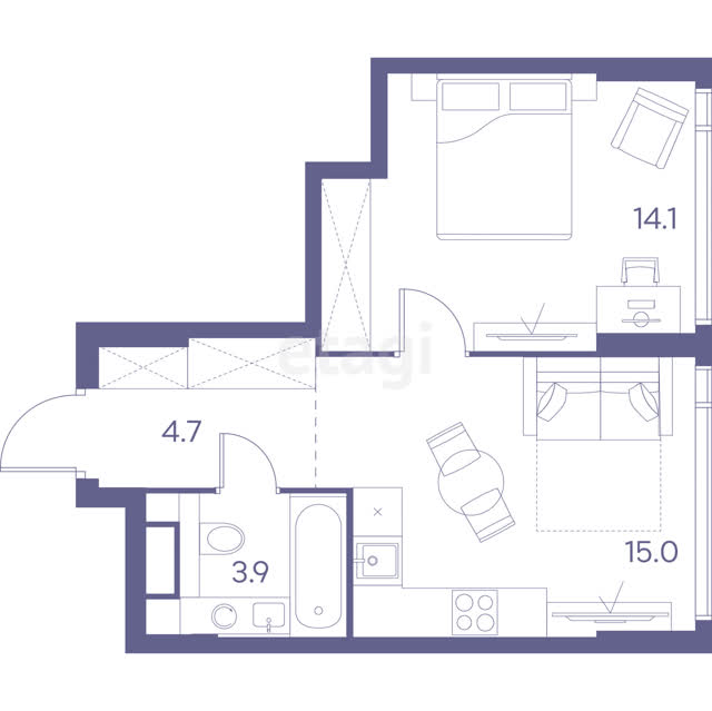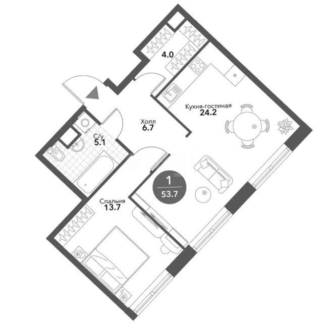 Mortgage from 113 631 руб./mth.1-room sq.37.7 m214/43 floor