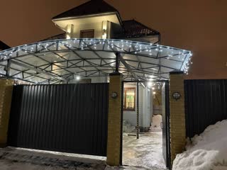 Парковочное место во дворе с автоматическими воротами и навесом.