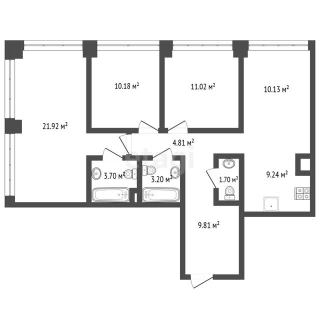 В квартире предусмотрен шикарный мастер-блок, удобно спроектированная кухня-столовая и просторный холл с постирочной зоной. Квартира предлагается с предчистовой отделкой высокого качества. Квартира удалена от лифтовых холлов, с соседями граничит всего две стены во всей квартире. Это обеспечивает максимальную тишину и приватность.
