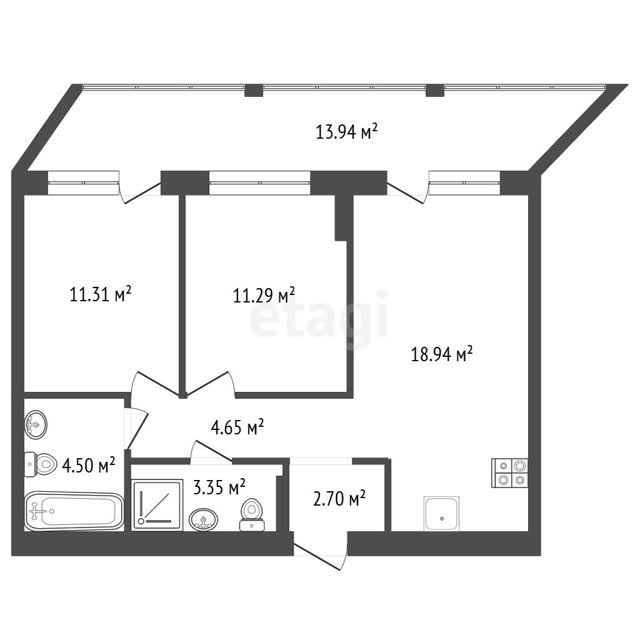 Кухня гостиная 18,94 метров позволит проводить комфортно время всей семье или звать гостей.