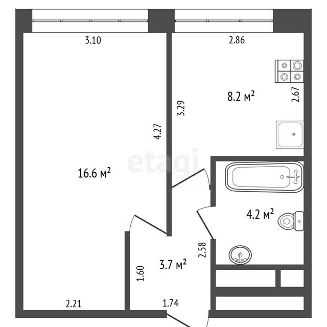 - Общая площадь32.7 м²