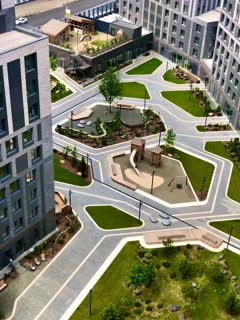 Жилой комплекс имеет закрытую благоустроенную территорию, разделенную на восемь ландшафтных зон с пешеходными дорожками, лужайками и цветочными композициями. На первых этажах расположены необходимые объекты инфраструктуры: супермаркет, кафе, фитнес-рум и сервисные службы. Удачное расположение на набережной сочетает спокойную атмосферу с отличной транспортной доступностью до центра города.