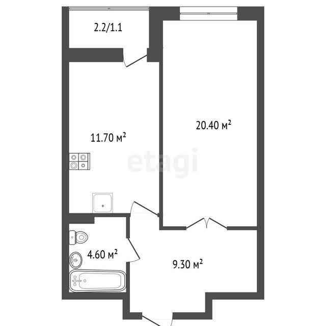- Общая площадь46.7 м²