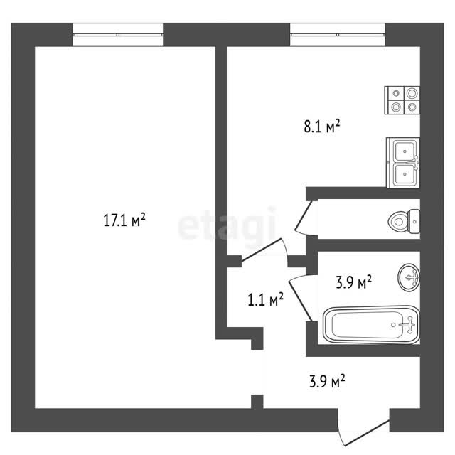 Объект отличается продуманной планировкой с изолированной комнатой 17,1 м², просторной кухней 7,2 м² и удобной совмещённой сантехнической кабиной с душевой.