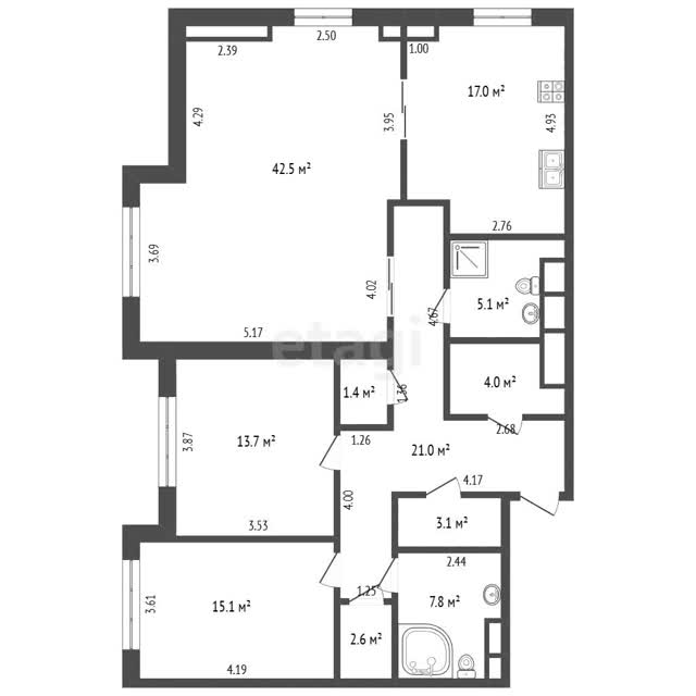 Квартира с 2 спальнями общей площадью 133.3 м² в комплексе бизнес-класса "Дом на Мосфильмовской".