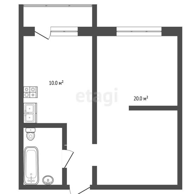 Функциональная планеровка : кухня 10 м² с выходом на лоджию , комната 20 м² , с/у совмещённый .Высота потолков 2,8м.