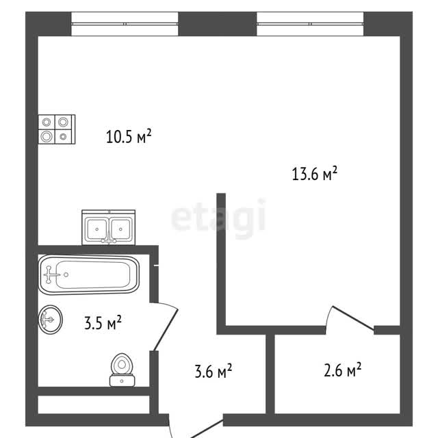 - Общая площадь33.8 м²