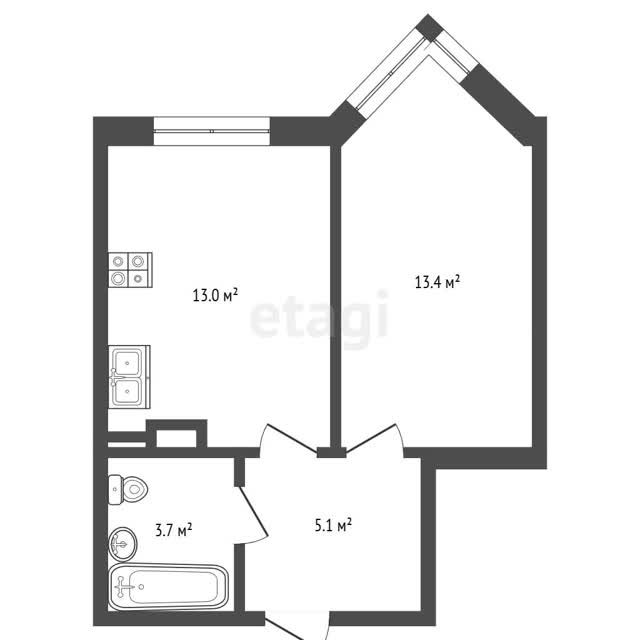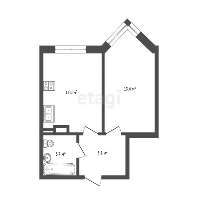 · Планировка: Общая площадь 35,5 м². Отдельного внимания заслуживает просторная кухня 13 метров — отличное место для завтраков и уютных вечеров.