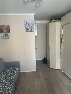 - Просторная жилая зона площадью 14 кв. м плавно переходит в компактную кухню размером 3.2 кв. м