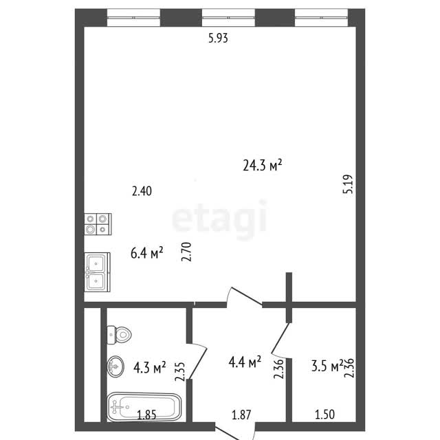 - Общая площадь43 м²