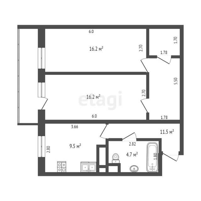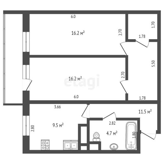 Комната 2 – 16,2 м2;