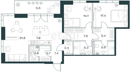 Выбрать 3-комнатную квартиру в продаже в районе Донской - смотрите на сайте компании «Этажи».