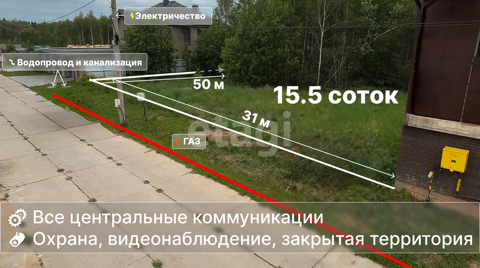 - Участок находится в охраняемом поселке с круглосуточным видеонаблюдением и пропускной системой безопасности.