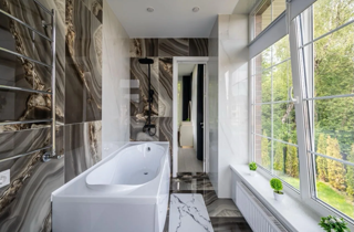 В доме 6 спален/кабинет/игровые/гостевые..., в т.ч. мастер-спальня, со своим санузлом и гардеробной, 4 санузла, большая терраса, кухня-гостиная, гардеробная, кладовая, котельная, большие окна, высокие потолки, более 3-х метров. Установлен охранный комплекс Гольфстрим, с температурными оповещателями.