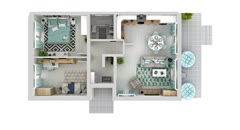 В рациональной планировке — просторная гостиная с кухней, наполненная светом благодаря большим окнам, где уютно собираться с семьёй и друзьями. Две отдельные спальни подарят атмосферу уединения и спокойного отдыха.