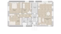 Этот одноэтажный дом в стиле барнхаус создан для тех, кто ценит гармонию простоты и комфорта. Рациональная планировка включает просторную гостиную с кухней, где будет собираться семья и друзья, а также две отдельные спальни для отдыха и уединения.