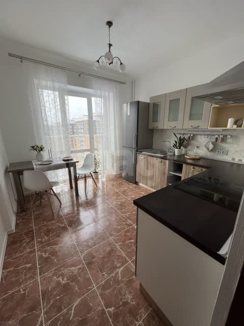 Квартира с косметическим ремонтом. Просторная комната, кухня полностью меблированы. В квартире есть вся необходимая техника: холодильник, стиральная машина, духовой шкаф.